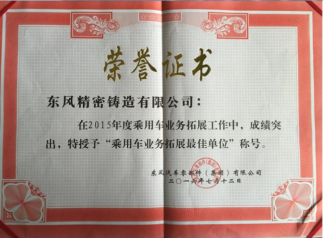 東風精鑄榮獲乘用車業(yè)務拓展最佳單位