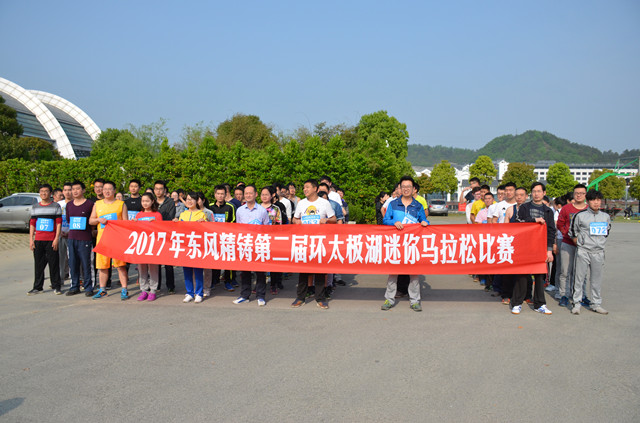2017年?yáng)|風(fēng)精為了進(jìn)一步踐行 “快樂工作、健康生活”的工作理念,豐富員工文體活動(dòng)內(nèi)容,特舉行第二屆東風(fēng)精鑄環(huán)太極湖迷你馬拉松運(yùn)動(dòng)會(huì),此次運(yùn)動(dòng)會(huì)由東風(fēng)精鑄工會(huì)及徒步、長(zhǎng)跑協(xié)會(huì)聯(lián)合舉辦,比賽路線全長(zhǎng)8.8公里,共有8個(gè)代表團(tuán)100人參加。